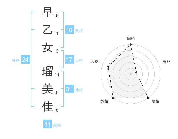 早乙女 瑠美佳さんを姓名の画数から五運を鑑定