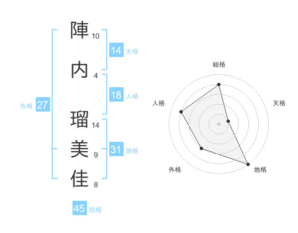 陣内 瑠美佳さんの総格は45画の4点!