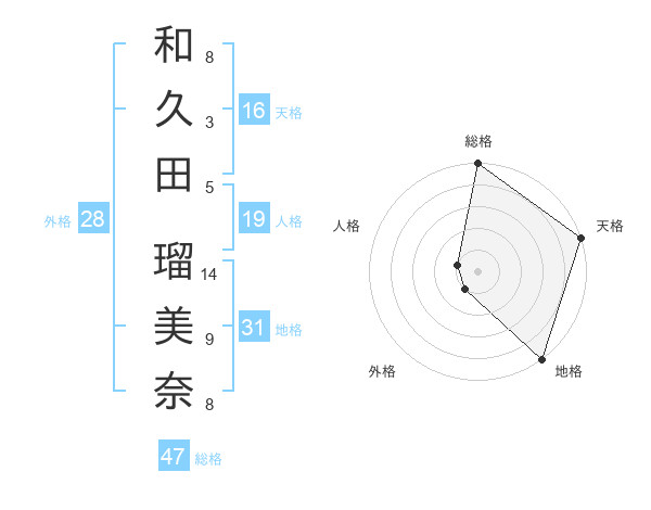 和久田 瑠美奈さんを姓名の画数から五運を鑑定