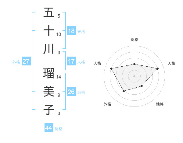 五十川 瑠美子さんを姓名の画数から五運を鑑定