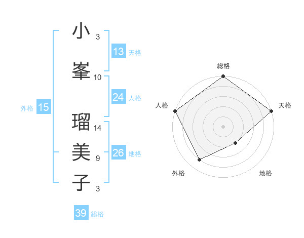 小峯 瑠美子さんを姓名の画数から五運を鑑定
