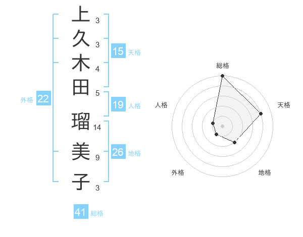 上久木田 瑠美子さんを姓名の画数から五運を鑑定