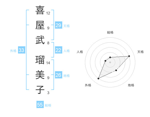 喜屋武 瑠美子さんを姓名の画数から五運を鑑定