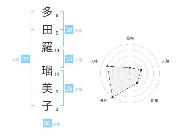 多田羅 瑠美子さんの外格は23画の5点!