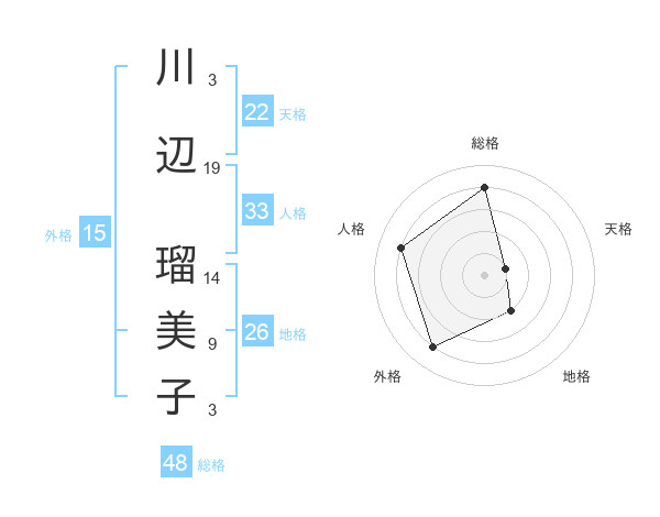 川辺 瑠美子さんを姓名の画数から五運を鑑定