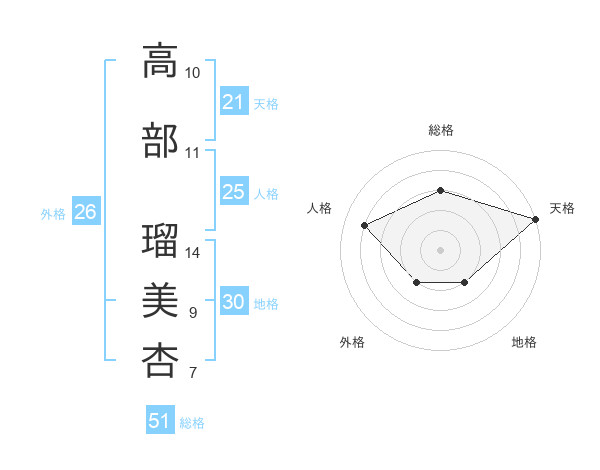 高部 瑠美杏さんを姓名の画数から五運を鑑定