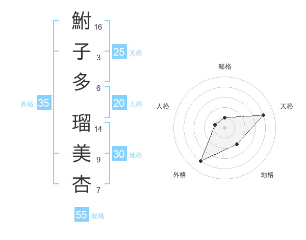 鮒子多 瑠美杏さんの総格は55画の1点!