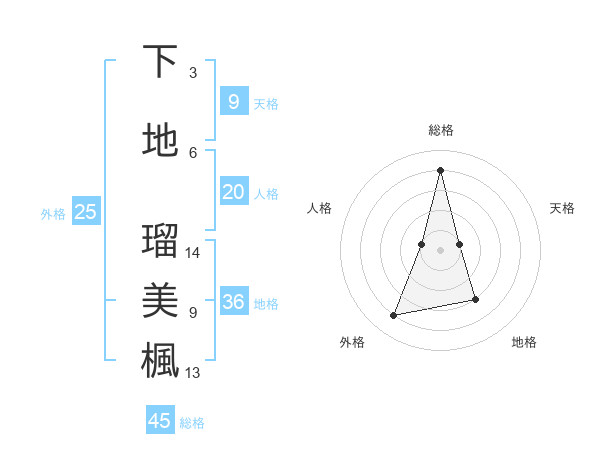 下地 瑠美楓さんを姓名の画数から五運を鑑定