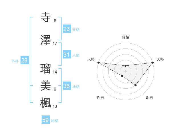 寺澤 瑠美楓さんの天格は23画の5点!