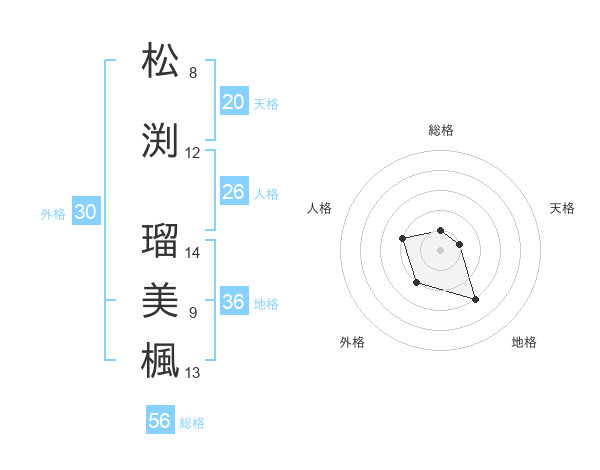 松渕 瑠美楓さんの天格は20画の1点!