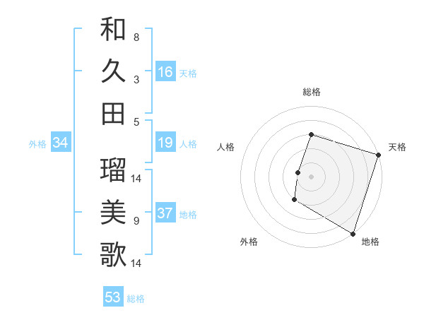 和久田 瑠美歌さんを姓名の画数から五運を鑑定