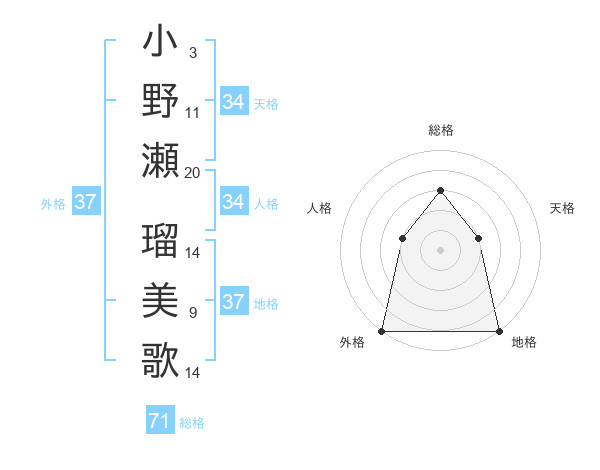小野瀬 瑠美歌さんの総格は71画の3点!