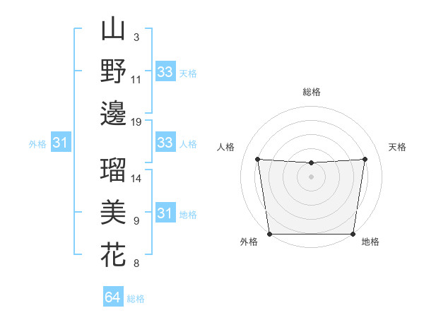 山野邊 瑠美花さんの天格は33画の4点