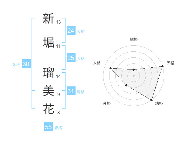 新堀 瑠美花さんを姓名の画数から五運を鑑定