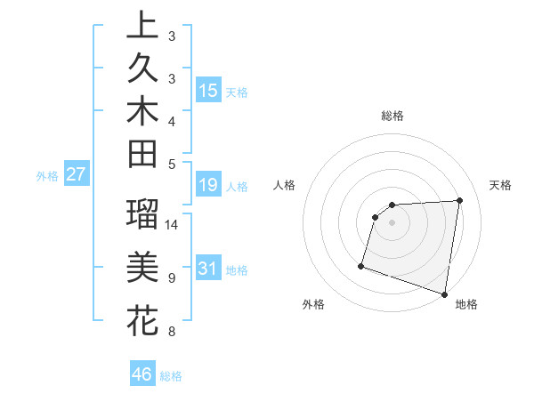 上久木田 瑠美花さんの天格は15画の4点