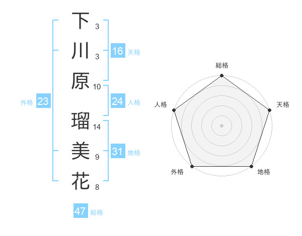 下川原 瑠美花さんを姓名の画数から五運を鑑定