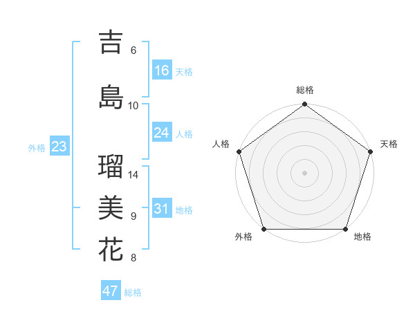 吉島 瑠美花さんの総格は47画の5点!