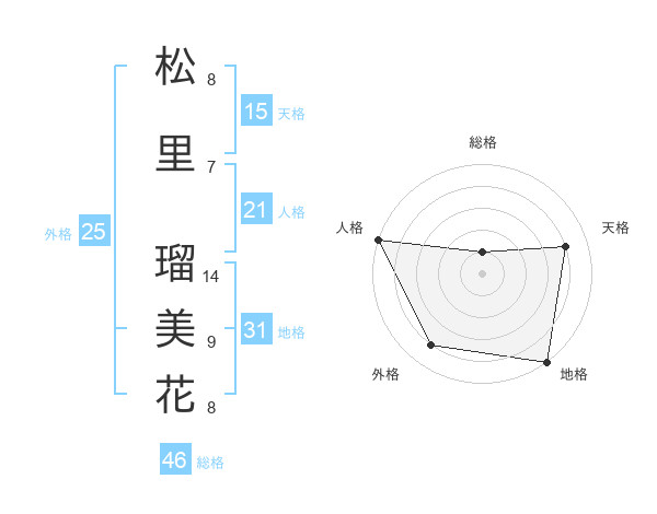 松里 瑠美花さんを姓名の画数から五運を鑑定