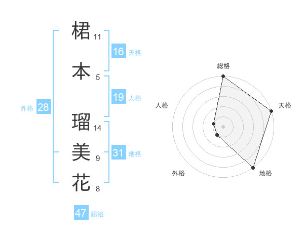 桾本 瑠美花さんの地格は31画の5点!