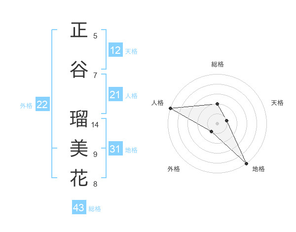 正谷 瑠美花さんの天格は12画の1点!