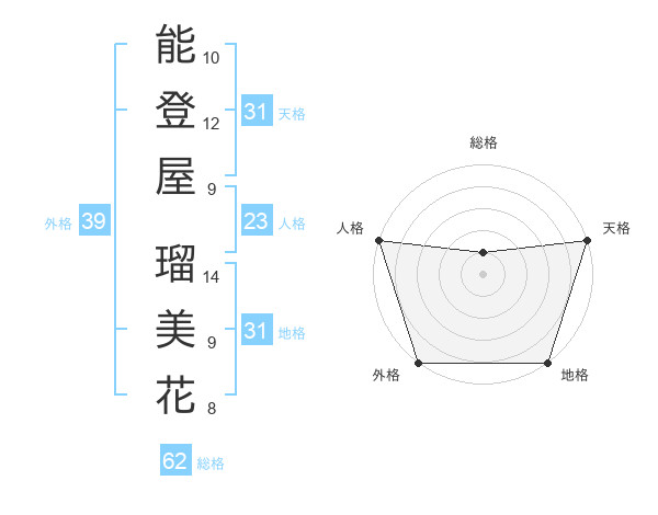 能登屋 瑠美花さんを姓名の画数から五運を鑑定