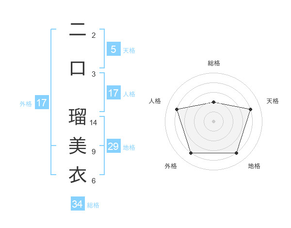 二口 瑠美衣さんを姓名の画数から五運を鑑定