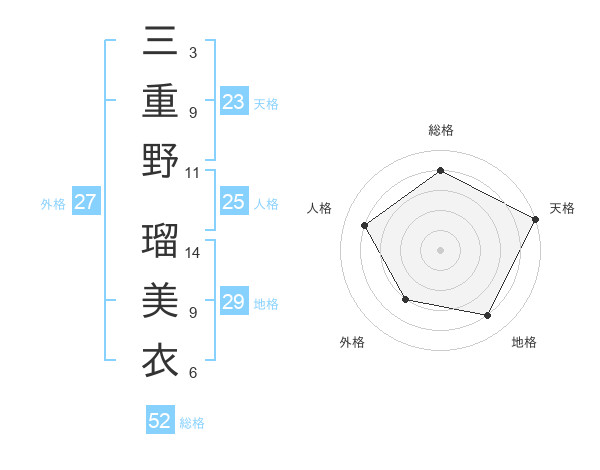 三重野 瑠美衣さんを姓名の画数から五運を鑑定