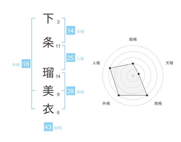 下条 瑠美衣さんの天格は14画の1点!