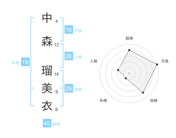 中森 瑠美衣さんを姓名の画数から五運を鑑定