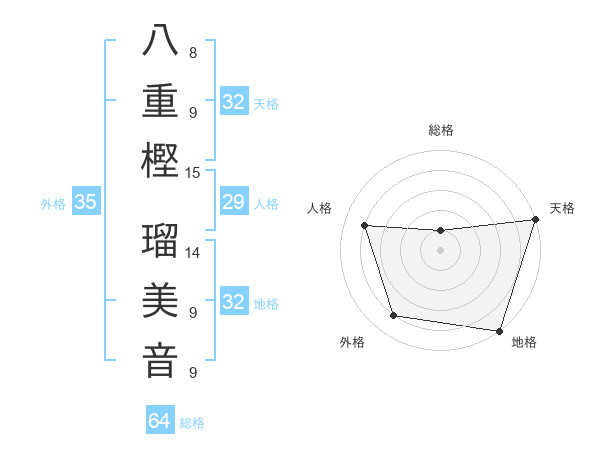 八重樫 瑠美音さんを姓名の画数から五運を鑑定