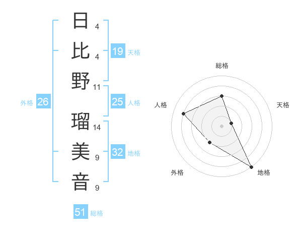 日比野 瑠美音さんを姓名の画数から五運を鑑定