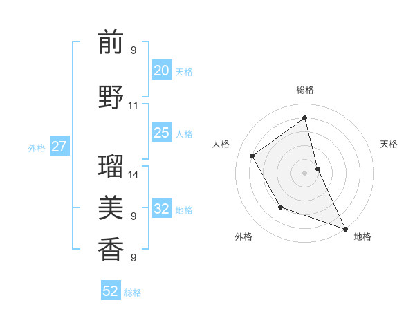 前野 瑠美香さんを姓名の画数から五運を鑑定