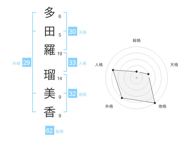 多田羅 瑠美香さんを姓名の画数から五運を鑑定