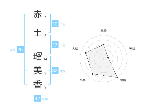 赤土 瑠美香さんを姓名の画数から五運を鑑定