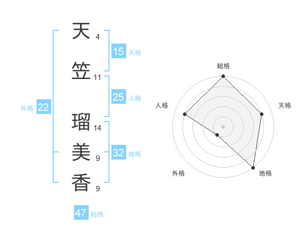 天笠 瑠美香さんの総格は47画の5点!