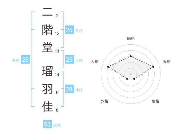 二階堂 瑠羽佳さんの天格は25画の4点!