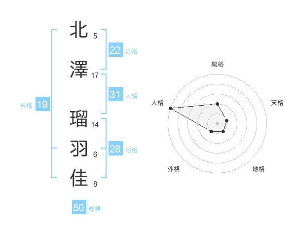 北澤 瑠羽佳さんを姓名の画数から五運を鑑定