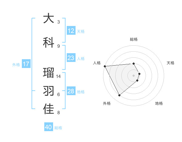大科 瑠羽佳さんを姓名の画数から五運を鑑定
