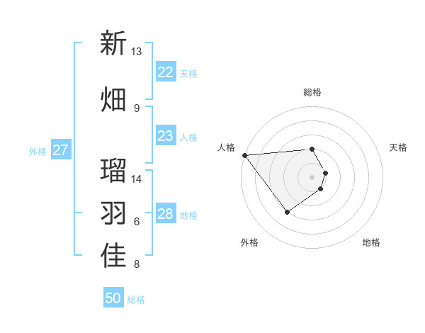 新畑 瑠羽佳さんを姓名の画数から五運を鑑定