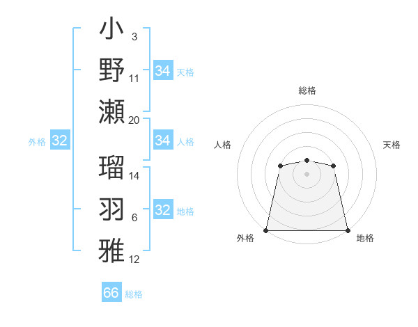 小野瀬 瑠羽雅さんの外格は32画の5点