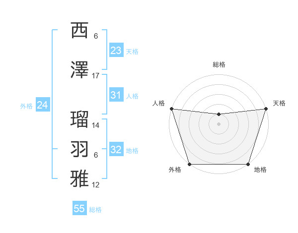 西澤 瑠羽雅さんを姓名の画数から五運を鑑定