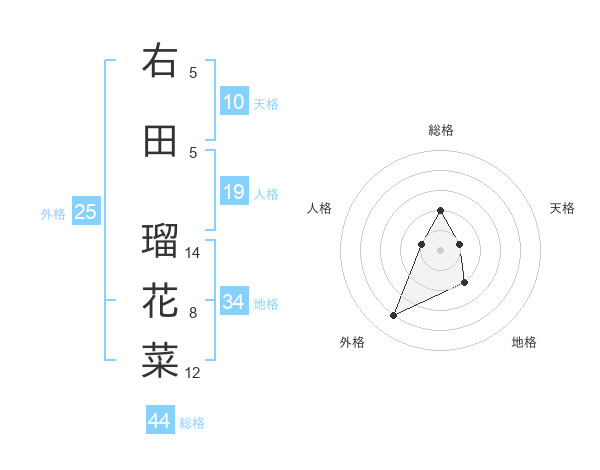 右田 瑠花菜さんの総格は44画の2点!
