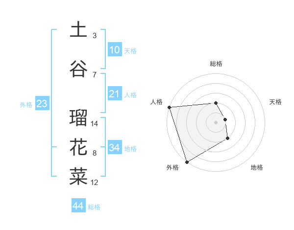 土谷 瑠花菜さんを姓名の画数から五運を鑑定