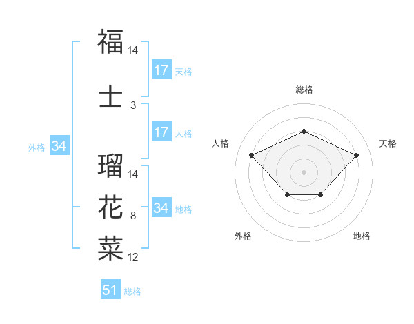 福士 瑠花菜さんを姓名の画数から五運を鑑定