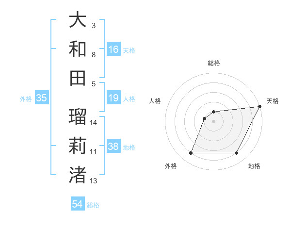 大和田 瑠莉渚さんの外格は35画の4点