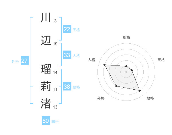 川辺 瑠莉渚さんを姓名の画数から五運を鑑定