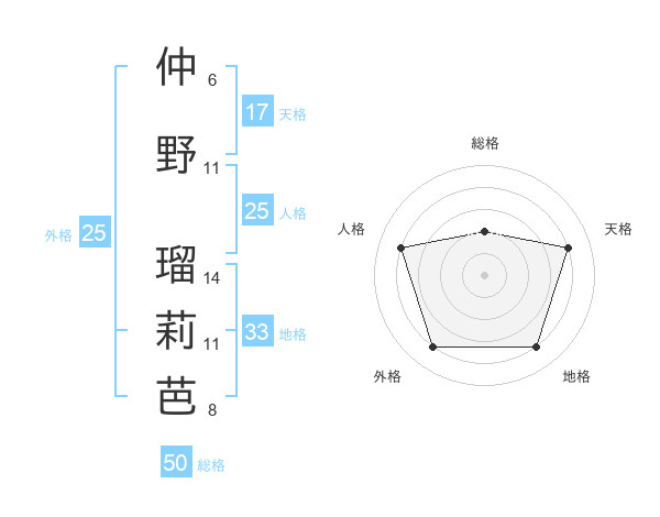 仲野 瑠莉芭さんの総格は50画の2点