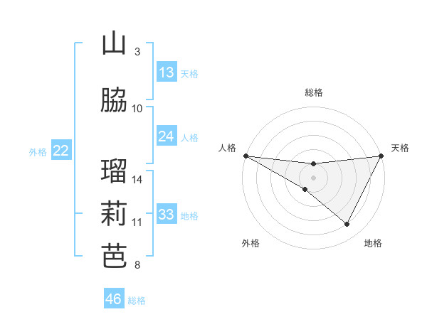 山脇 瑠莉芭さんを姓名の画数から五運を鑑定