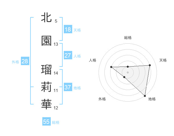 北園 瑠莉華さんを姓名の画数から五運を鑑定