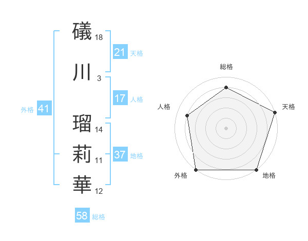 礒川 瑠莉華さんを姓名の画数から五運を鑑定